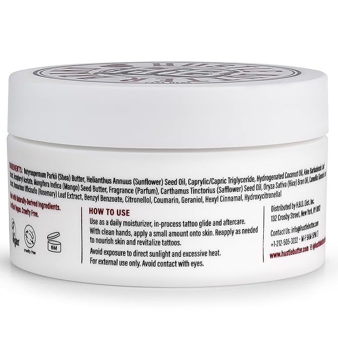 - TATTOO BALM SAFE FOR USE WHILE HEALING: Hustle Butter is not only safe for new tattoos but is the #1 artist recommended tattoo aftercare product to moisturize and nourish skin as the tattoo heals.