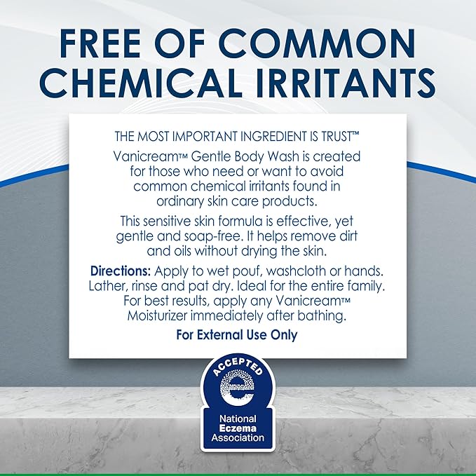 - Dermatologist-Tested: Awarded the Seal of Acceptance from the National Eczema Association, Vanicream body wash contains ingredients that are essential components of the skin and benefit all skin types