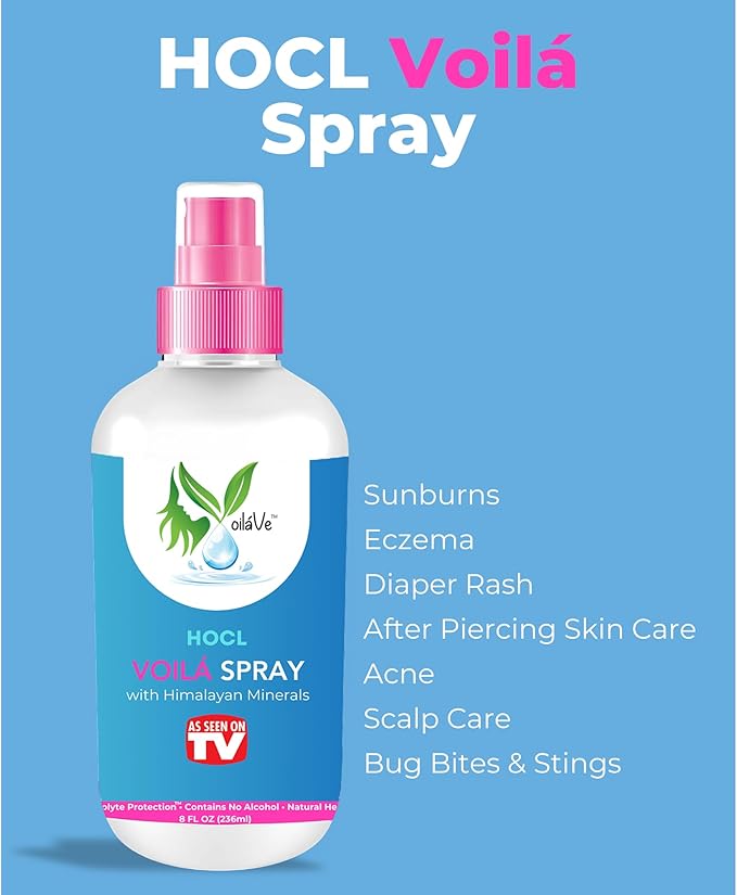 VoilaVe HOCL Spray | Hypochlorous Acid Spray for Skin | HOCL Face & Body Mist Toner for Acne, Scars, Redness, Irritations, Itchy Scalp & Piercing Aftercare | As Seen on TV – 8oz (Packaging May Vary)