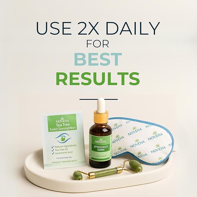 NOVEHA 120Pcs Tea Tree Oil Eyelid & Lash Wipes With Hyaluronic Acid, Green Tea & Chamomile For Blepharitis & Itchy Eyes, Individually Wrapped Eyelash Wipes, Natural Makeup Remover & Cleanser (2 Pack)