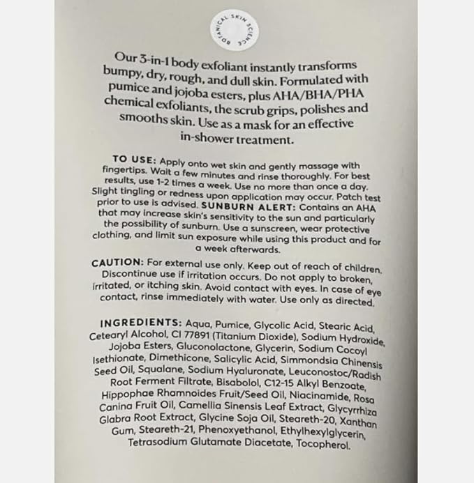 - IMPROVING TONE & TEXTURE: Our 3-in-1 KP body scrub exfoliant instantly transforms bumpy, dry, rough, and dull skin. It works to loosen, lift, & dissolve dead skin cells and clear pores