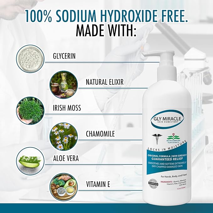 - INFORMED SKINCARE CHOICE: Elevate your skincare routine with GLY MIRACLE, a non-stinging formula that prioritizes your skin's health and well-being. Free of sodium hydroxide and other harsh irritants, our gentle yet effective moisturizer provides intense hydration without causing stinging or burning, making it perfect for sensitive, irritated skin.