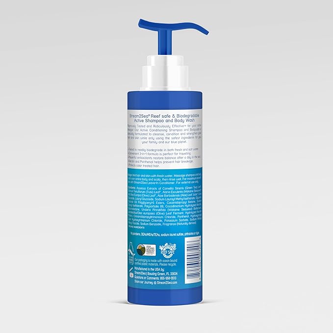 - TRIPLE HAIR CARE, REEF SAFE & OCEAN FRIENDLY: 3-in1 non-toxic conditioning swim shampoo is restorative and lightly detangling, leaving your skin and hair soft and clean. Perfect for the active adventurers, it’s also great for everyday use at home, for responsible eco-consumers who remain conscious of their environmental impact.