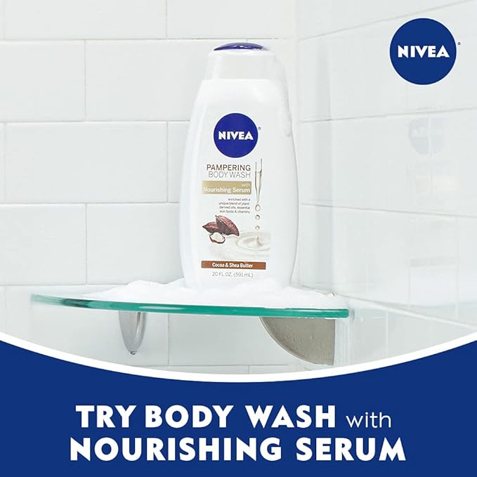 Nivea Cocoa and Shea Butter Pampering Body Wash with Nourishing Serum, 20 Fl Oz Bottle (Pack of 3)