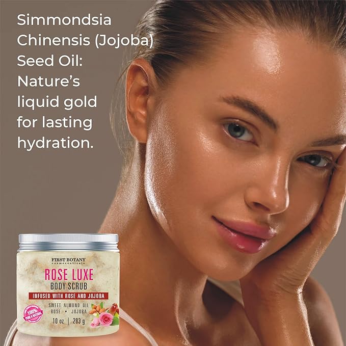 First Botany Body Scrub - Natural Exfoliating Salt Scrub & Body and Face Souffle helps with Moisturizing Skin, Acne, Cellulite, Dead Skin Scars, Wrinkles (10 fl oz, Rose)