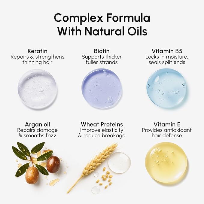 - Hydrating Hair Mask for Damaged Hair — A moisturizing hair mask infused with biotin, argan oil, and vitamins to nourish, repair, and smooth dry or color-treated hair. Sulfate-free and paraben-free deep conditioning hair treatment mask for curly hair.