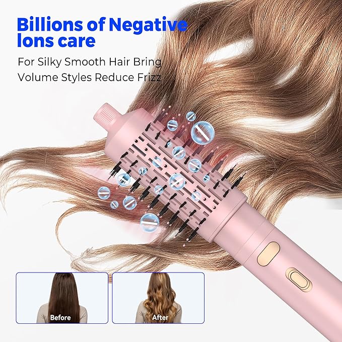 - Rotating Hair Dryer Brush:The rotating mechanism of the rotating hot air brush, supports bi-directional rotation and styling while blow drying.Use this multi-directional hair dryer brush to add volume and shine to create silky, voluminous curls.The brush blow dryer features ceramic-coated hair barrels that distribute heat evenly and rotating curling brush help reduce damage caused by over-styling.Negative ions penetrate the hair to reduce frizz and add shine