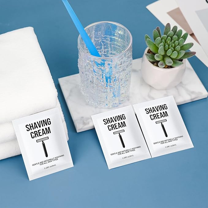 - 1.Sufficient Quantity: The package contains 100 travel shave cream with unscented.Enough for you and your family every day; Each package is individually packed, so there is no need to worry about leakage .It is also suitable for any hotel guest or personal use it's ideal for those who need more quantity