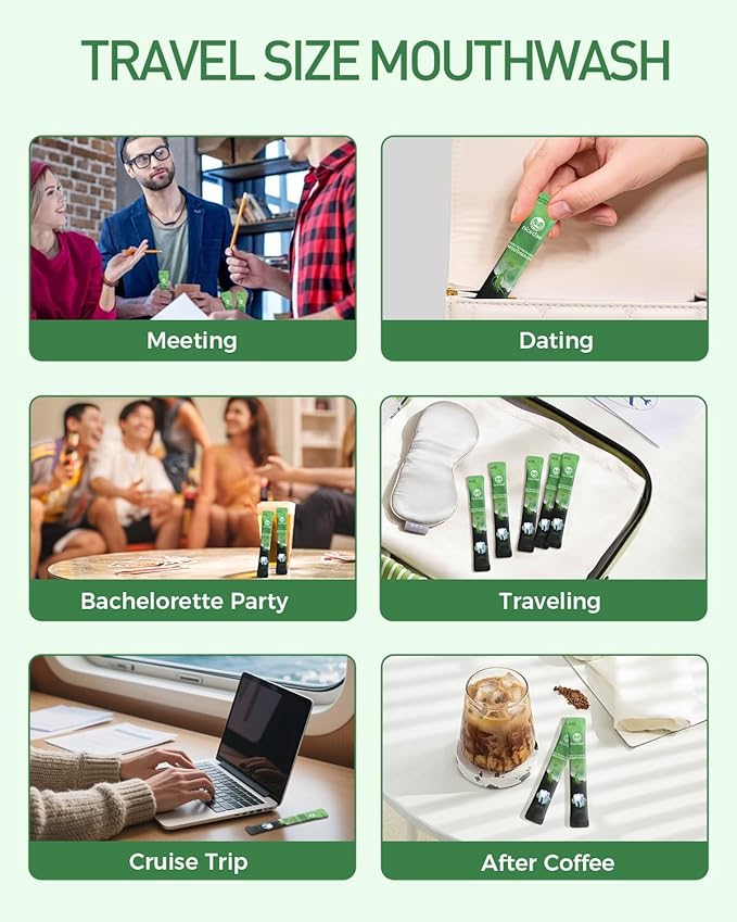 Travel Size Mouthwash Portable Packets Alcohol-Free & Fluoride-Free Fresh Mint Mouth Wash 30 Individual Wrapped Cruise Essentials