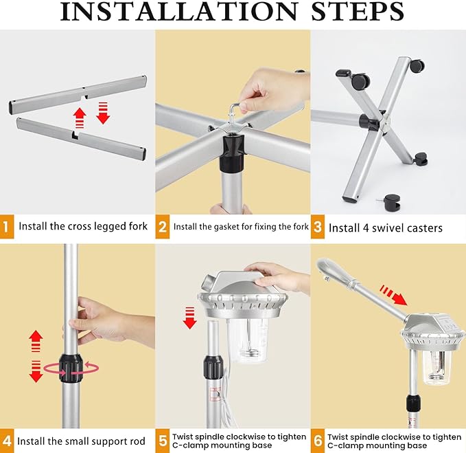 - The nozzle of stand facial steamer can rotate 360° and be freely adjusted between 36-52 inches in height, making it suitable for people of different heights and different scenarios. Whether you are sitting or standing, you can find the most suitable angle to enjoy a professional facial spa treatment at home