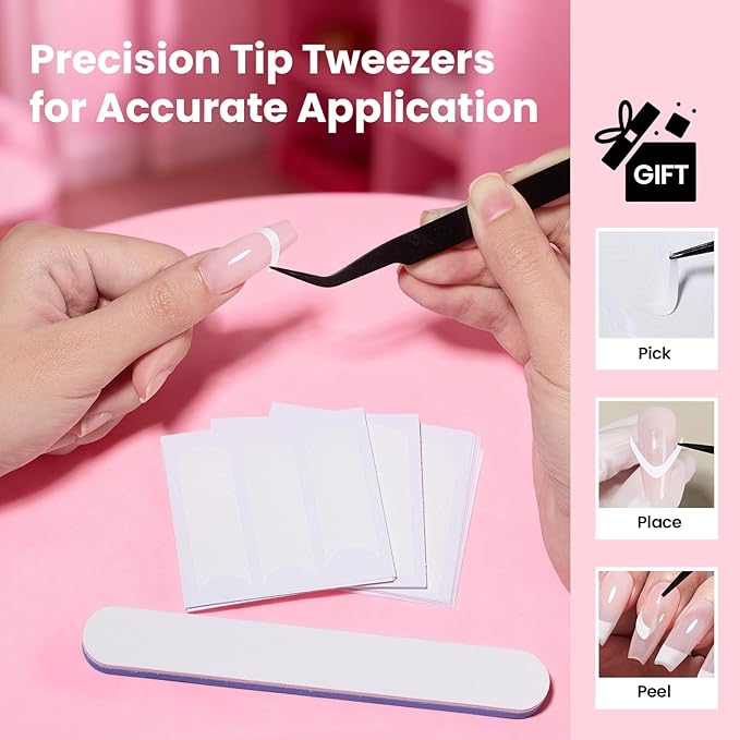- Effortless Application for French Lines: The self-adhesive stickers are easy to apply, simply press firmly to avoid bubbles. Prevents polish seepage for crisp, clean edges. Just remove the guide after the polish is completely dry to reveal a professional-looking manicure every time.