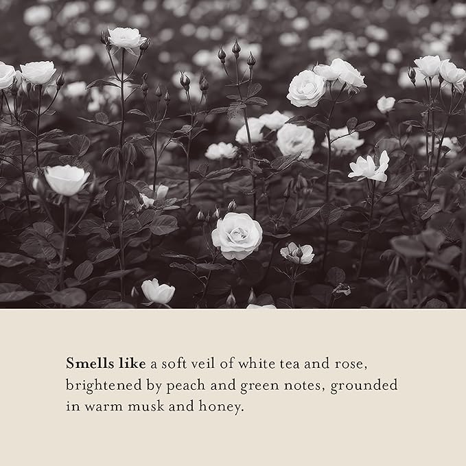 - White Tea & Rose: A delicate floral blend of fresh white tea and blooming rose petals, softened by airy green notes. Elegant, subtle, and quietly uplifting. Fragrance developed to meet strict European standards for skin health.