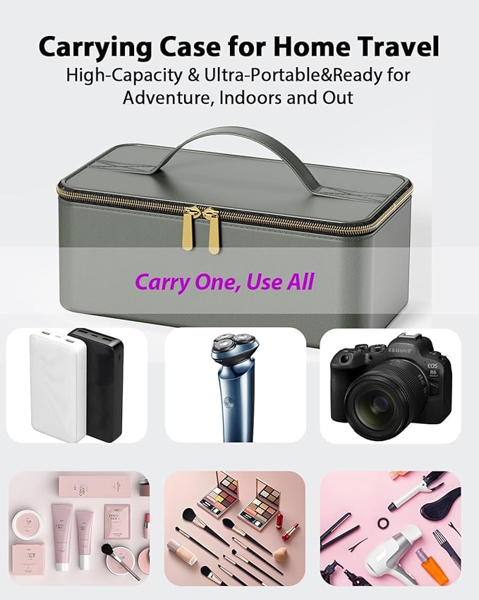 - ✅[Travel Carrying Case Includes] Thoughtful Organization: Blow dryer with travel carrying case is designed with your convenience in mind. Mesh bags keep accessories neatly organized, sturdy straps secure the hair dryer, and anti-bump dividers ensure protection from impacts. Plus, its waterproof design keeps everything looking as good as new. Whether at home or on the go, travel carrying case is your trusty guardian for hassle-free styling. You're going to absolutely love our travel hair dryer