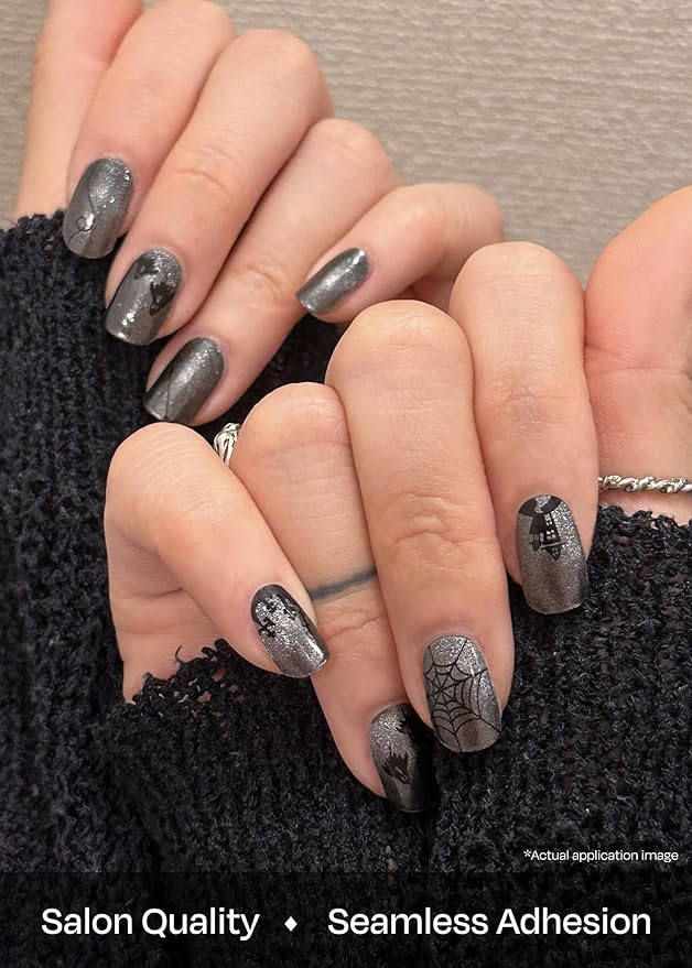 ohora Semi Cured Gel Nail Strips (N Ghost Story) - Works with Any Lamps, Salon-Quality, Long Lasting, Easy to Apply & Remove - Includes 2 Prep Pads, Nail File & Wooden Stick