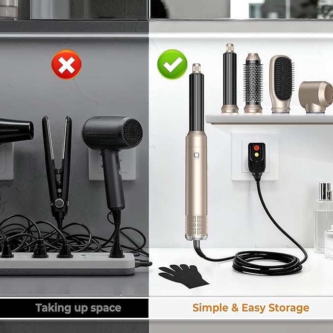 - SAFTEY & CONVENIENCE for YOU: Our hair dryer with attachments designed with your safety in mind, this blowout brush hair dryer features a standard ALCI safety plug with auto leakage protection. The blow out brush handle is designed to withstand high temperatures, ensuring durability and peace of mind. Additionally, we recommend using anti-scalding gloves when changing the removable blow head to prevent burns. The initial use may produce a slight odor, which is normal and will dissipate quickly.