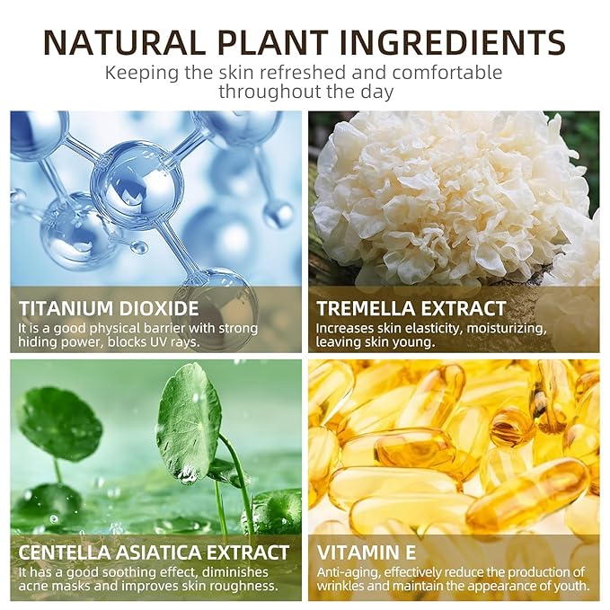 - 【Plant Skin Care Ingredients】The mushroom head air cushion cc cream Contains a variety of natural skin care ingredients, such as Centella asiatica extract, Tremella extract, vitamin E, etc. While applying makeup, it also balances sebum levels, reduces acne, spots, fine lines, and nourishes the skin.