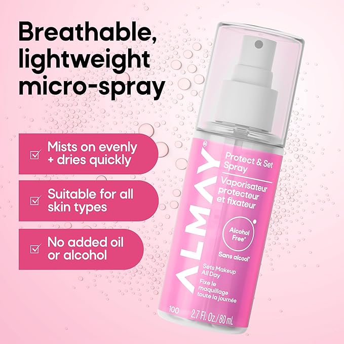 - Protects and sets makeup all day—no smudging or fading